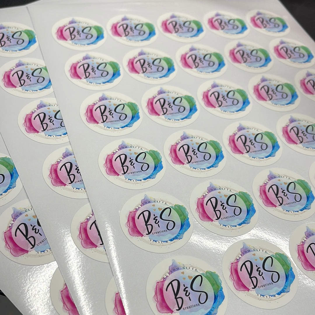 2” round stickers - roughly 16 per sheet